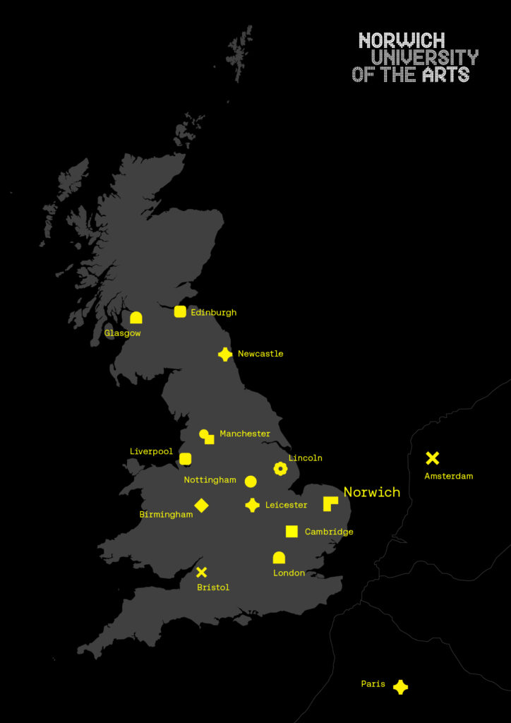 If you are arriving at Norwich Train Station, please don’t get the 25|26 bus reading ‘University’. This goes to the University of East Anglia, not Norwich University of the Arts.