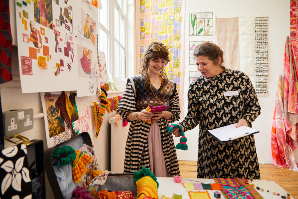Work in our spacious riverside studio spaces and workshops with access to print, knit, weave and embroidery equipment and a top-of-the-range digital creative suite.